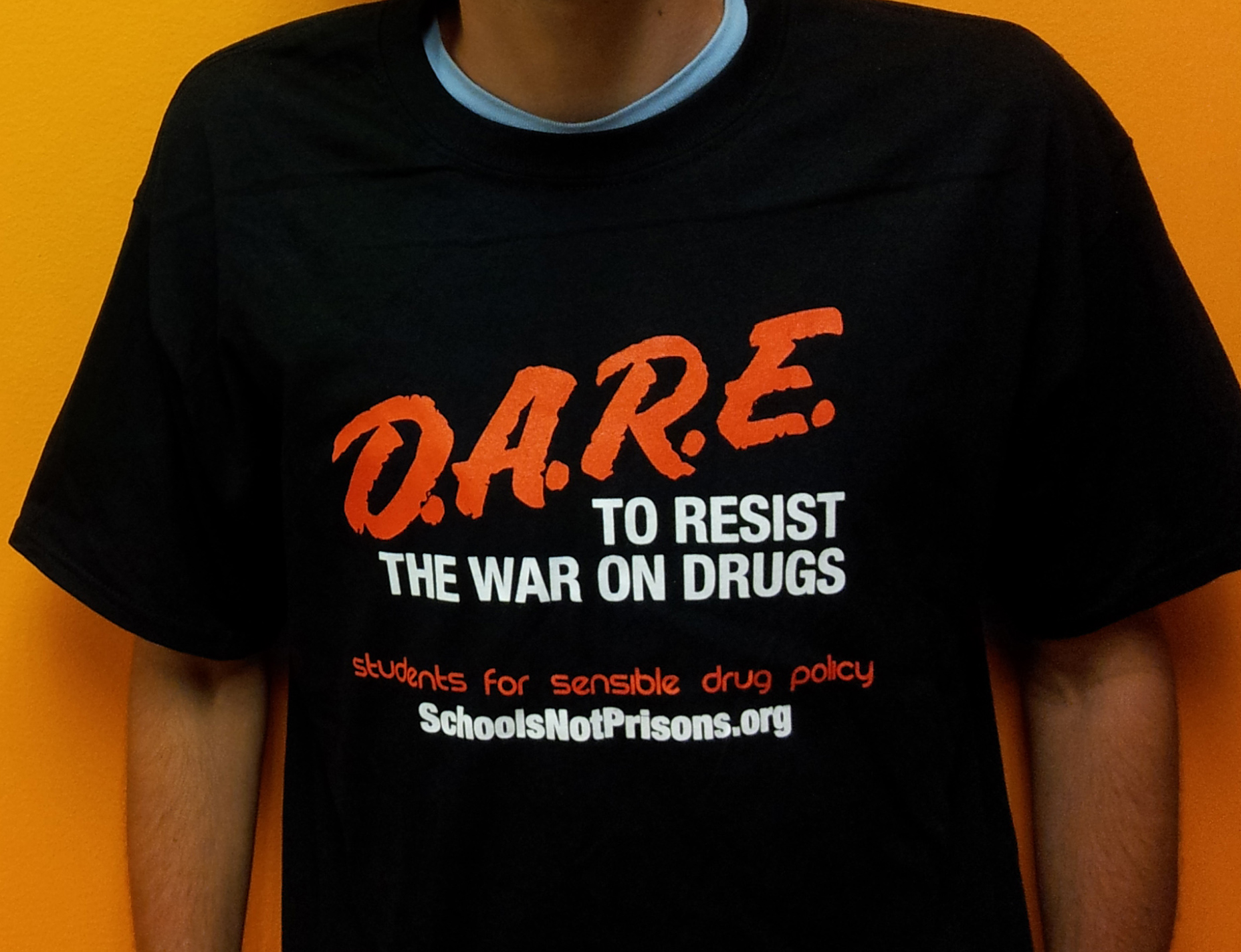 Whether you want to order some of these to sell as a fundraiser for your SSDP chapter, represent yourself as a member of the “DARE generation”, or just want to spread the message of sensible drug policies, these shirts are sure to start some interesting conversations.